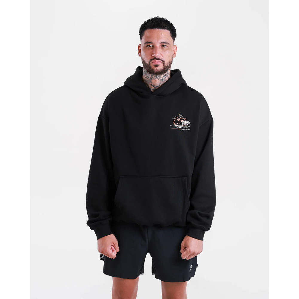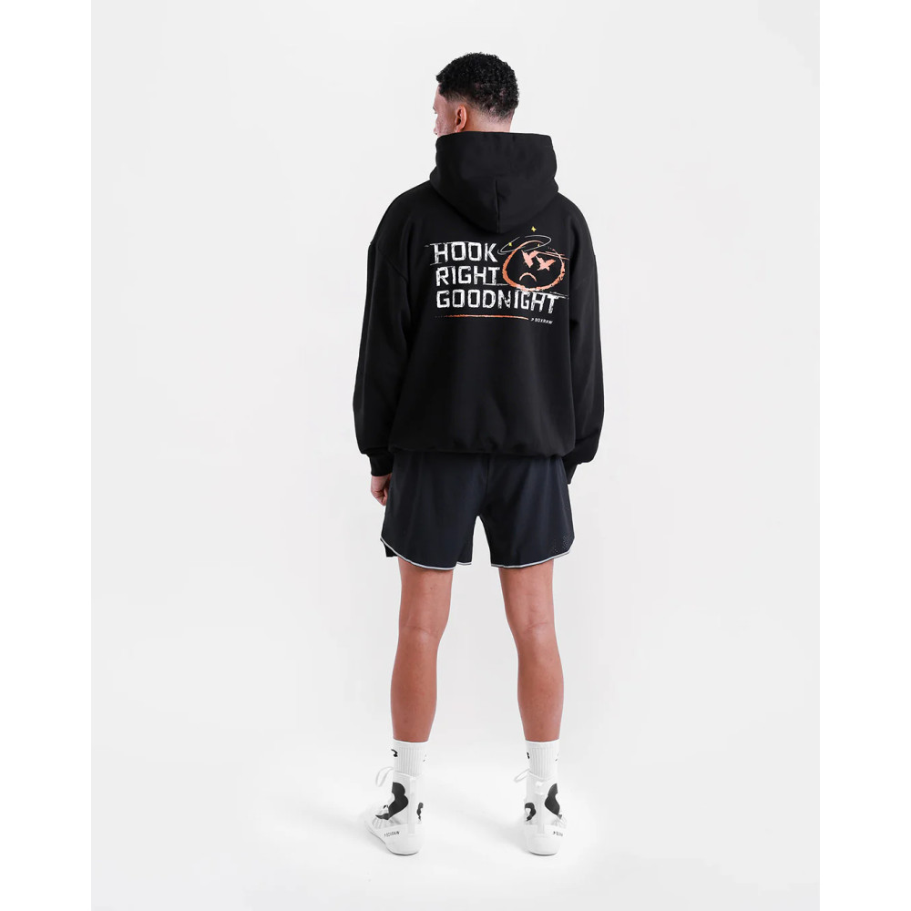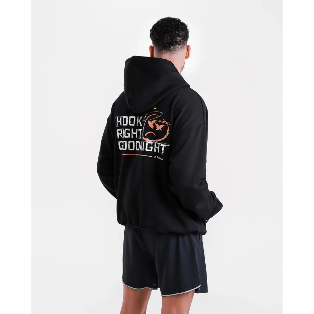 The standout Hook Right Goodnight graphic is printed on both the front and back. Practical details like the kangaroo pocket, ribbed cuffs and hem, and a patented hidden zip pocket make it a functional everyday piece. Embroidered Strike logos on the sleeves and the signature BOXRAW neck plate complete its premium finish.