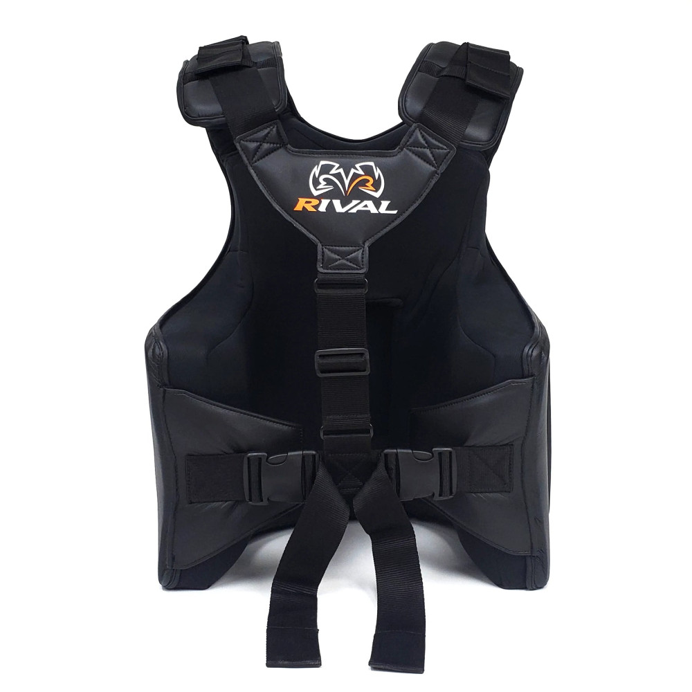 The Rival RBP Trainer Body Protector is the evolutionary, latest and most powerful standard in body protection the boxing world has ever seen. It is made of high quality synthetic PU that can withstand the toughest training sessions. It features over 20cm of high density polyurethane and EVA foam padding surrounding a 2.5mm thick plastic sheet. With padded, ergonomic and adjustable straps, it sits comfortably on the shoulders for a comfortable fit and freedom of movement. The RBP protector is the most dynamic piece of equipment in the trainers repertoire with guaranteed performance.